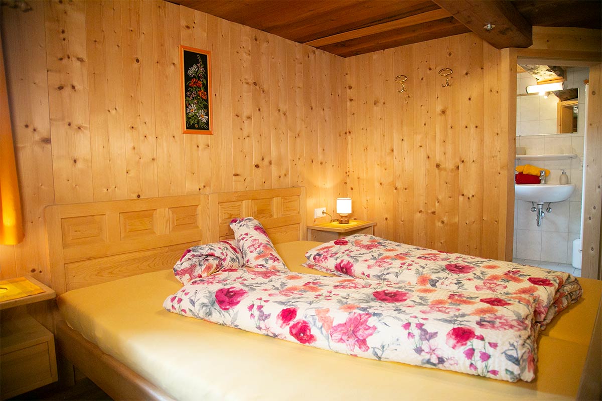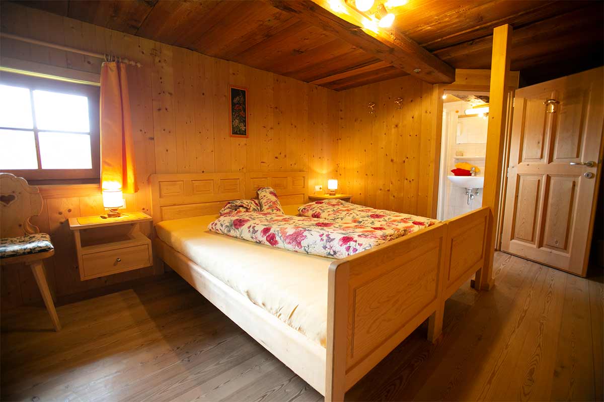 La camera matrimoniale è realizzata in legno d’abete rosso.